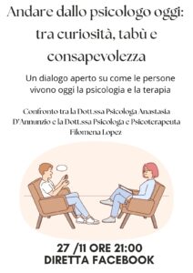 un dialogo tra due colleghe una Psicologa una Psicoterapeuta in un salotto in cui si parla ancora oggi di andare dallo psicologo e le paure